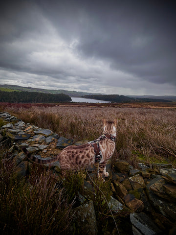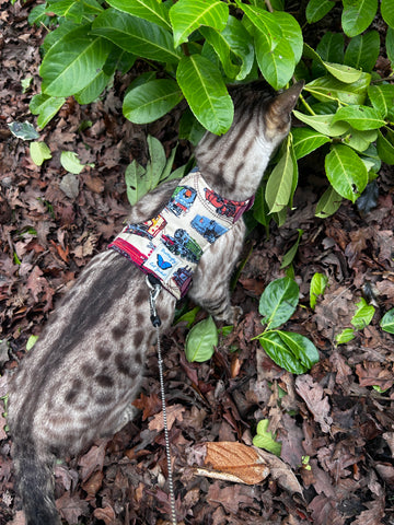 Please click on the link to read an article harness training your cat: Bengal Cat World http://www.bengalcatworld.com/home/?page_id=4566 Here you will see their cats wearing our very own Jackets.